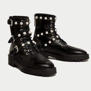 Zara Leather Faux Pearl Boots