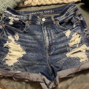 American Eagle Dark Washed Ripped Jean Shorts