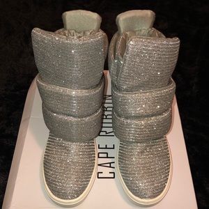 Futuristic silver sparkly wedge sneakers