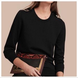 Burberry Check Detail Merino Wool Crew Neck Sweater in Indigo Blue