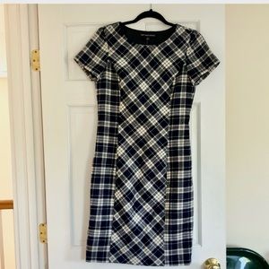 BROOKS BROTHERS “346” Navy Plaid Wool Sheath Dress Sz 6