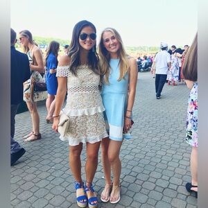 Blue lace overlay midi dress