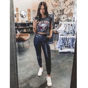 Commando Faux Leather Jogger Pants Relaxed Black Size Small