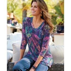 The Pioneer Woman Hot Pink Colorful 3/4 Sleeve V-neck Blouse Plus Size XXL Women