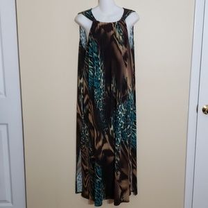 Maxi dress subtle teal brown animal print cheetah