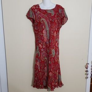 Pink leaf pattern flutter sleeve dress gently worn