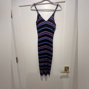 Vici. Midi blue ribbed dress with slit in the front. Medium.