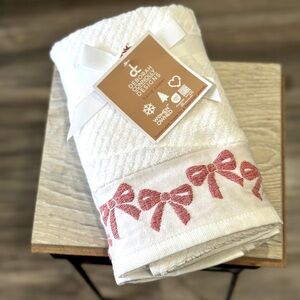 Deborah Connolly White 2 Bath Hand Towels with Red Bows