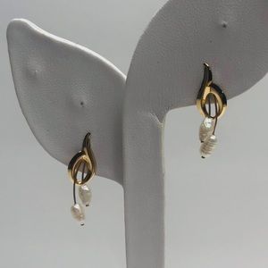 10K Gold Genuine Cultured Pearl & CZ Earrings