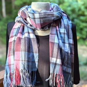 Cashmere Red Plaid Scarf with Fringe