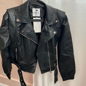 Padded shoulder motto jacket