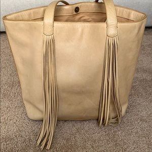Lucky brand tan leather tote with fringe