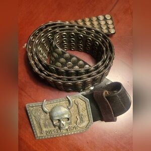 VIntage Skull 1978 Diesel Black Leather Belt Men's 42in Buckle Metal Stone