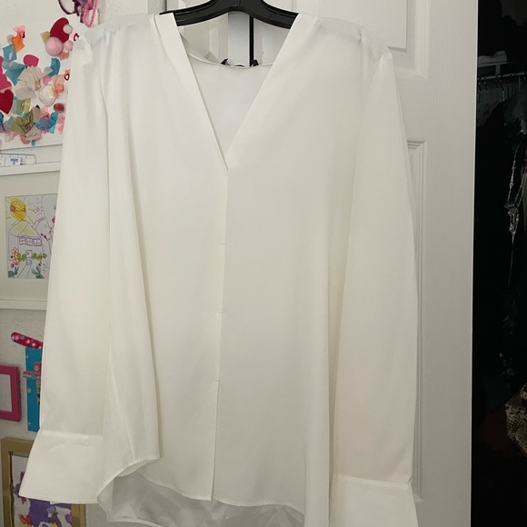 My gorgeous Lafayette 148 silk blouse in the color Cloud arrived in a stunning gift bag with sparkly tissue paper!! So thrilled!!