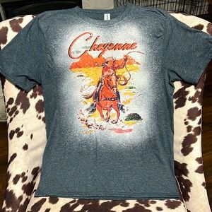 Women’s Large Western Graphic Tee, Bleached/Distressed, worn once, unisex fit