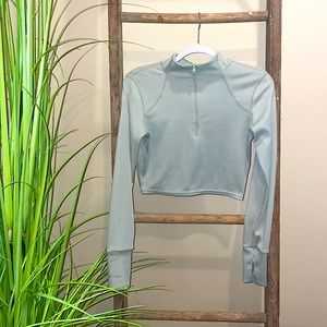 Light olive green cropped zip up pullover with thumb holes! 🧘🏼♀️