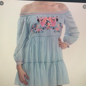 Free People Floral Blouse Top Long Sleeve White Flowy Oversized Boho Chic