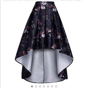 Hi - Low black bird & flower skater skirt