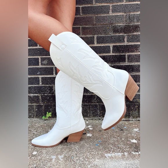 Shoes - NWT! WHITE PU WESTERN POINTED TOE COWGIRL BOOTS WITH SIDE ZIPPER