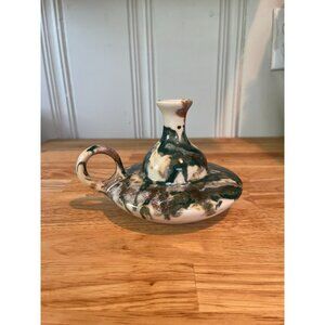 Handmade Pottery Candlestick Holder Cream/Beige Stick Glazed base Unglazed