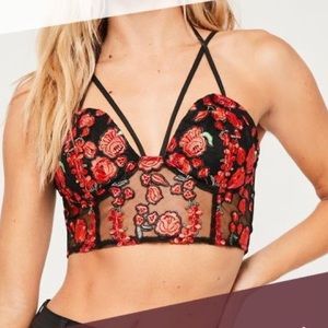 Strappy embroidered rose bralette