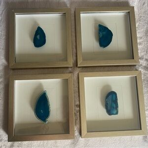 Silver Shadow Box With Blue Geode Rock Set Of 4