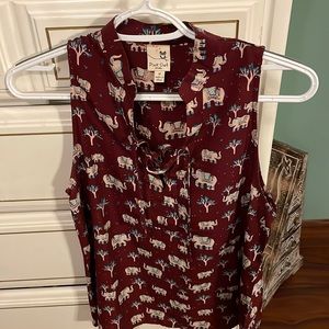 Red sleeveless top with elephants