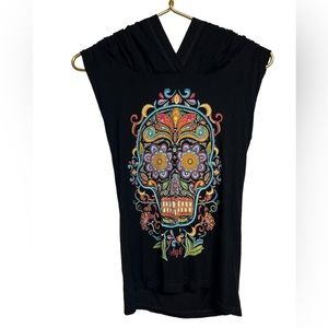 iAy GUEY! Sleeveless top with floral hood size M day of dead motif on front