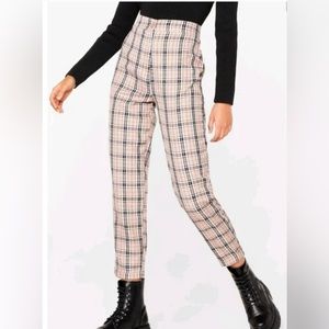 Nasty Gal Collection Plaid Beige Red Black Tapered Leg Pant Women 8