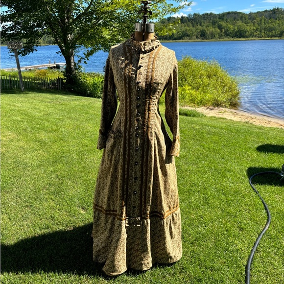 Beautiful antique dress! I have been waiting for a bargain for my collection for a while! I do believe this piece to be authentic. Stunning piece and condition is good. Minor staining around, and a few small tears/pulls. I am very happy regardless. Thank you so much!! A+++