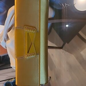 Cole Haan gold yellow clutch Satin nwt