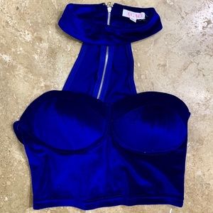 Blue Floral Off The Shoulder Ruched Crop Top