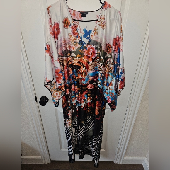 This beautiful kaftan dress was shipped to me quickly. It feels so silk-like and airy on this hot day. That’s right: I’m wearing it now!😎