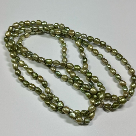 This is a beautiful pearl necklace, good quality, and a really unusual shade of green. It will go with a lot of blouses that I have. I will enjoy it for a long time!