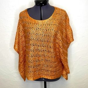 Old Navy Orange Button Up Pleated Puff Sleeve Blouse Linen Blend