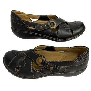 CLARK’S Shoes Leather Slip-On Loafers Size 6M Black Soft Footbed Comfort Shoes