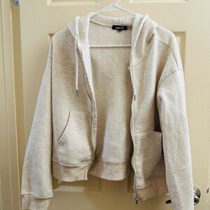 Forever 21 Cream Ribbed Open Cropped Cardigan