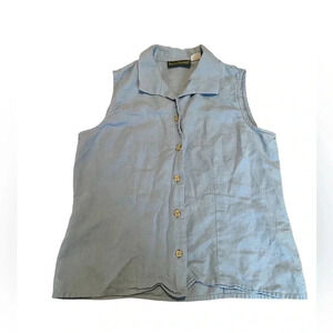 Harve' Benard Shirt Womens Petite L Sailor Chic Blue Linen Blend Beach Nautical