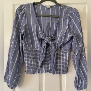 NWT Zara White Top with Tie and Bell Sleeves, Size Medium