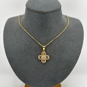 18K Gold Plated Over 925 Sterling Silver 4 Leaf Black Clover Necklace
