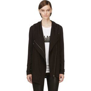HELMUT LANG Black Villous Hooded Cardigan Asymmetrical Sweatshirt Size Small