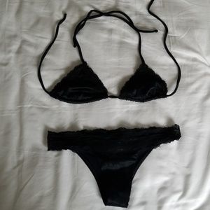 Sexy Beach Bunny Black Lace Brocade Bikini Small