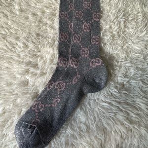 Silver and pink Gucci socks.