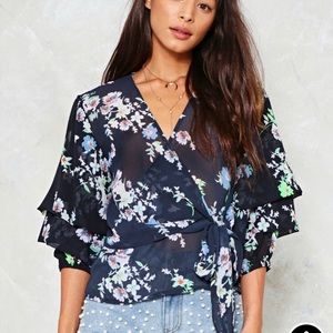 Zara Green Wrap Blouse with Cuffed Sleeves and Tie Front