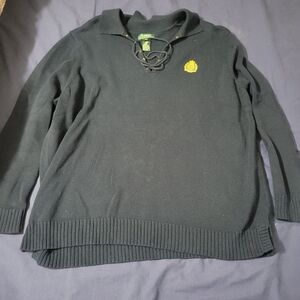 Lucky Brand Ladies V-Neck Sweater Size XXL Black Slide Slits