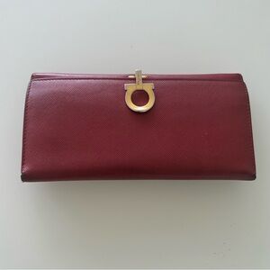 Ferragamo Gancini Leather Wallet in Scarlet Red