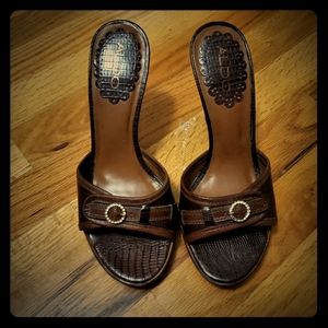 Adam Tucker Brown Leather Strappy Heel Sandal
