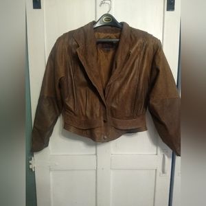1980"s vintage leather jacket large Vintsge Leather Bomber Brown Caramel