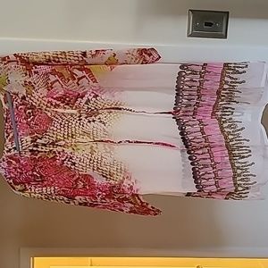 SPANX® SMALL ANKLE JEAN-ISH LEGGINGS WITH GRAY & CREAM MIX PATTERN - SIZE LARGE