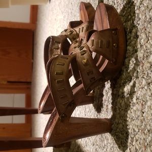 **LIGHTLY WORN** Carlos Santana Wood and Leather Heeled Sandals